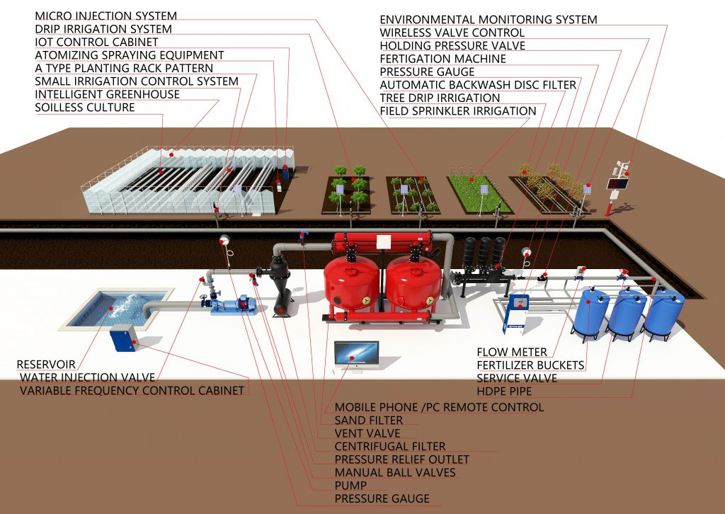 - Fertigation Machine: Máquina que mezcla y dosifica fertilizante en el sistema de riego.